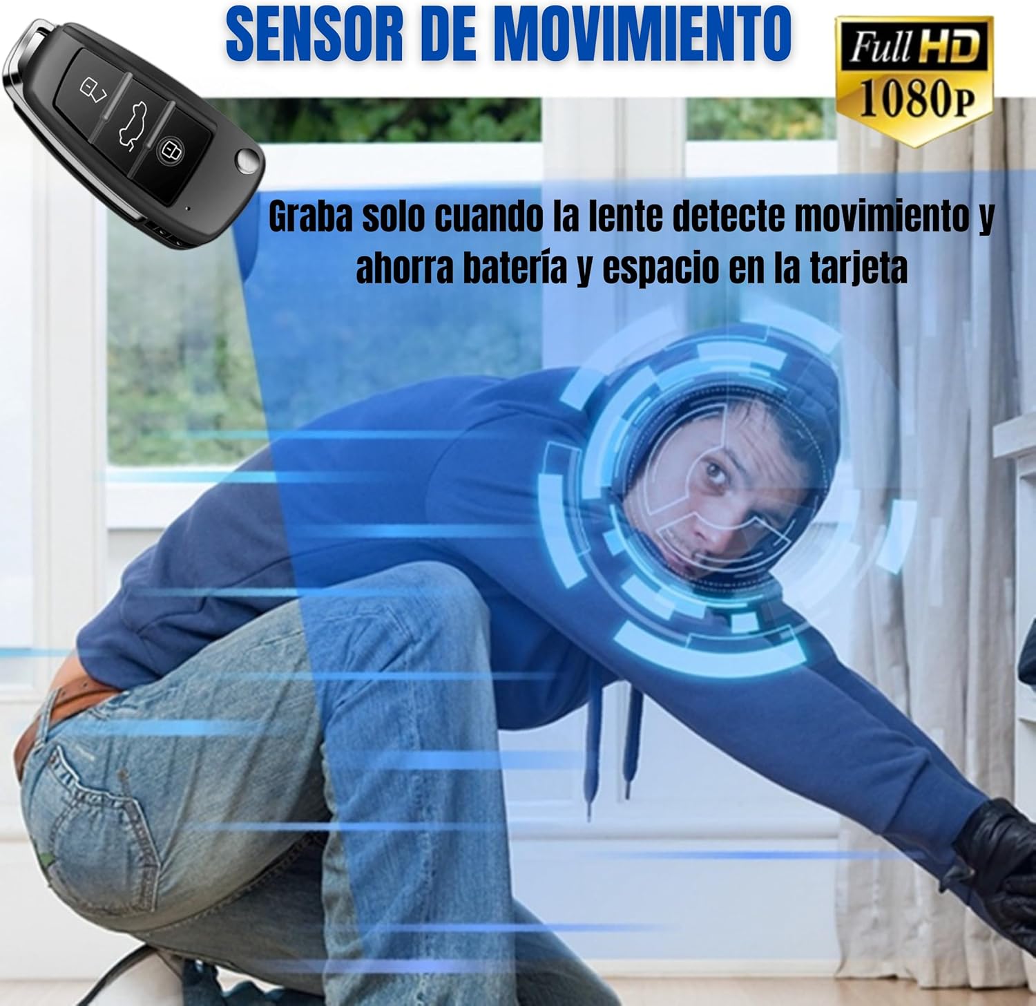 • CÁMARA VIGILANCIA INTERIOR/EXTERIOR: Diseñada con apariencia de llave de coche, esta cámara compacta graba vídeo con audio en resolución real 2MP Super HD . No emite luces durante la grabación, lo que la hace ideal para entornos de baja visibilidad. Perfecta para capturar imágenes en interiores y exteriores. Funciona Con tarjeta Micro SD de Hasta 128GB Plug and Play sin necesidad de conexión.